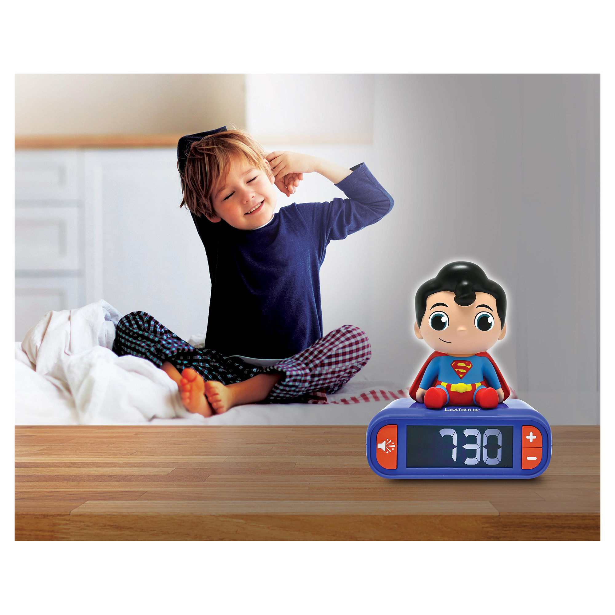 Tento roztomilý budík nabízí vše potřebné pro klidný spánek a příjemné probuzení! S intuitivními ovládacími tlačítky lze lehce nastavit čas na podsvícené LCD obrazovce, která nenarušuje spánek. Vyberte si z několika tematických tónů budíku a užijte si zábavné zvukové efekty. Hlasitost na zařízení je nastavitelná. Zářící 3D noční světlo se rozsvítí při stisknutí horní části zařízení nebo když zazvoní budík! Světlo automaticky zhasne po pár minutách nebo když horní část znovu stisknete. A pro ty, kteří se chtějí dál válet v posteli, je tu funkce odložení.