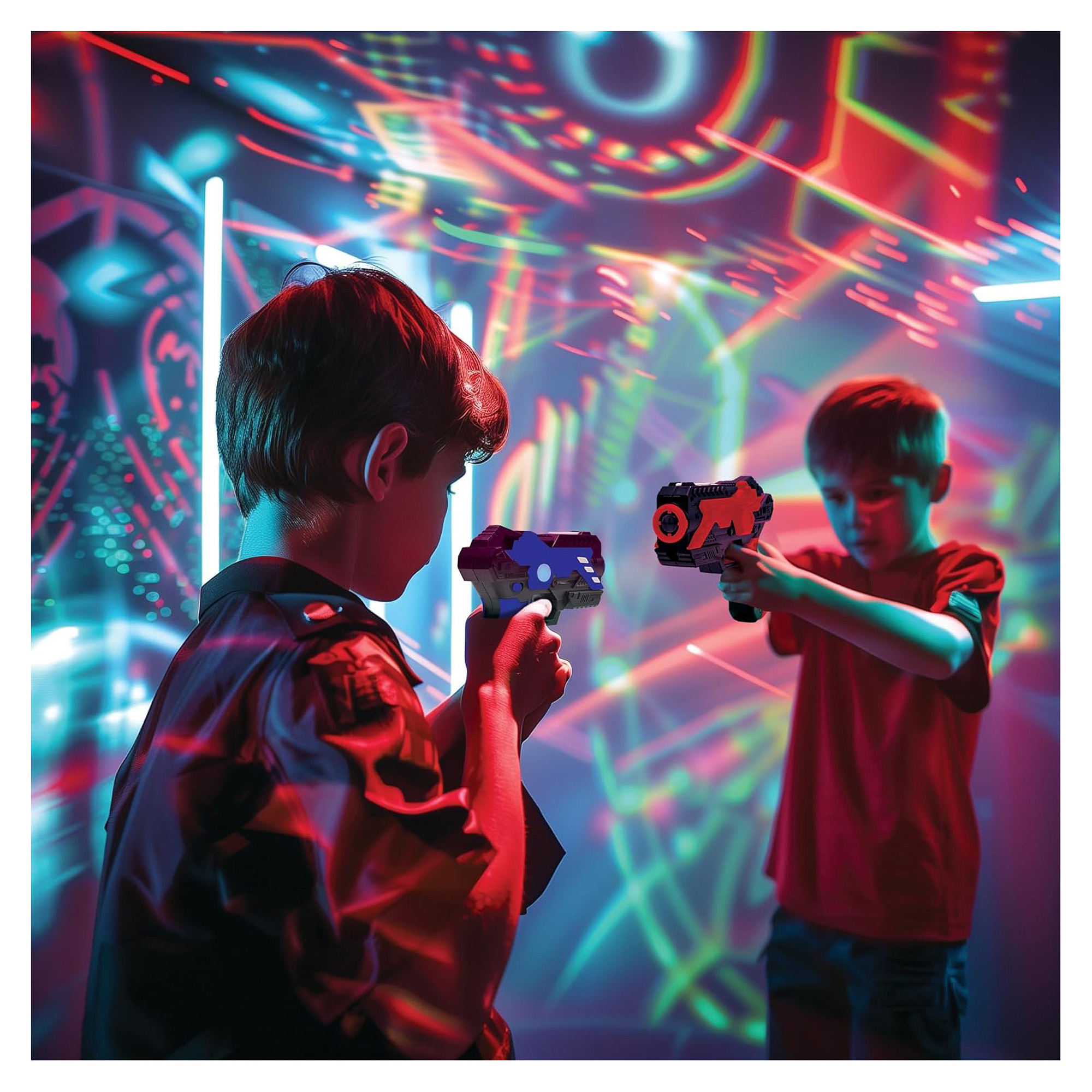 Interaktivní hra Laser Tag se dvěma pistolemi a štíty přináší pohlcující a realistický herní zážitek. Dva hráči se mohou utkat v napínavých duelech, přičemž každý má tři životy na hru. Cílem je zasáhnout protivníkův štít, který zároveň slouží jako počítadlo životů a jasně ukazuje, kolik jich ještě zbývá. Děti mohou střílet až na 25 metrů a pouštět se do epických soubojů, obzvlášť působivých při hře ve tmě. Zvukové a světelné efekty každou bitvu oživí a vtáhnou děti do akce. Na výběr jsou 4 různé možnosti střelby.