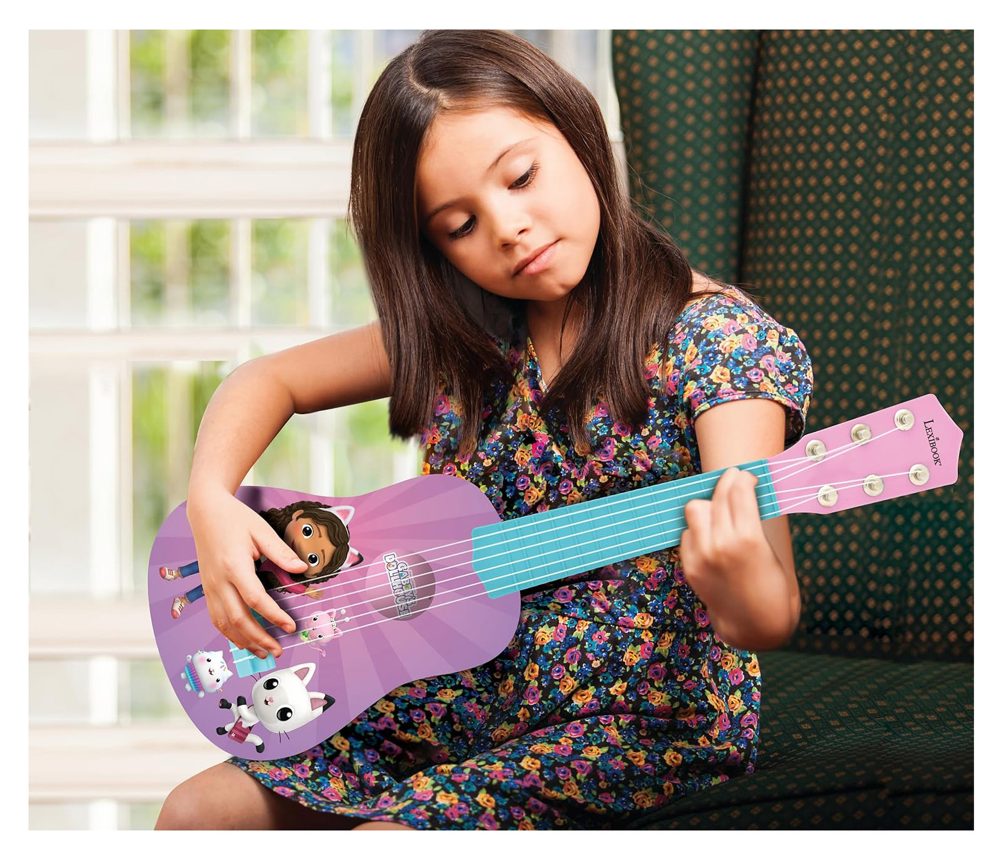 Tato fantastická 21" (53 cm) dlouhá dětská kytara je skvělým začátkem pro děti, které se chtějí zapojit do hudebních aktivit! Kytara je vybavena 6 nylonovými strunami a díky lehkému plastovému materiálu je ideální pro malé ruce. Malý průvodce kytarou děti seznámí se základními principy hraní na kytaru, včetně toho, jak kytaru držet. Ideální hračka pro všechny děti, které baví hudba.